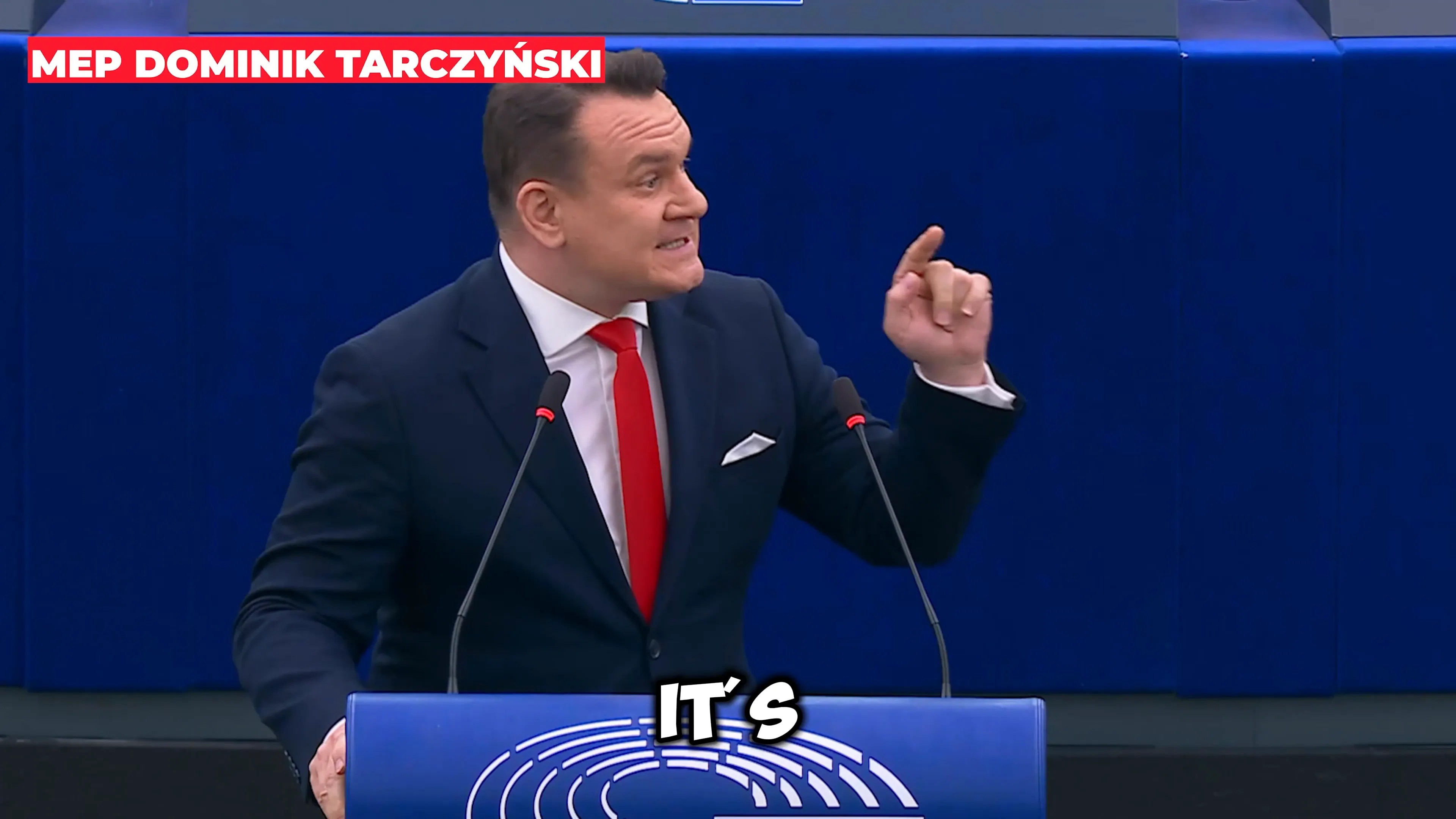 Speakers tied EU migration policy to broader geopolitical concerns. Dominik Tarczyński opened and closed the session with combative language, accusing EU leadership of leaving Europe weak while Russian drones fly over Poland, and castigating leftist critics for focusing on tariffs and foreign policy rather than migration.